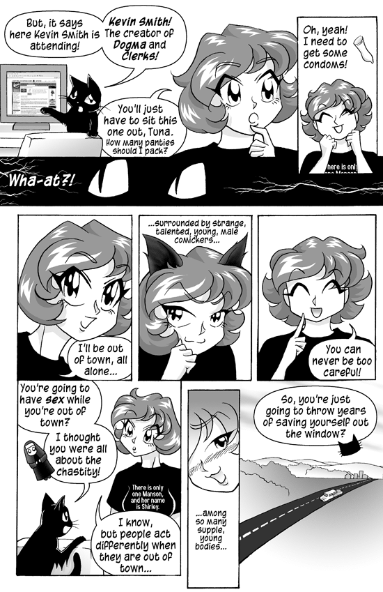 TUNA: "You're going to have sex while you're out of town? I thought you were all about the chastity!"