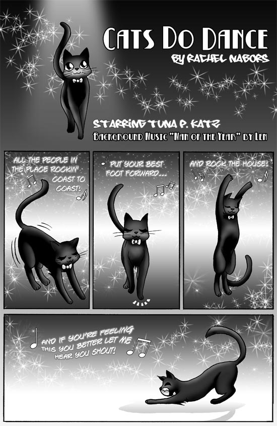 Title: "Cats Do Dance - By Rachel Nabors - Starring Tuna P. Katz - Background Music 'Man of the Year' by Len"