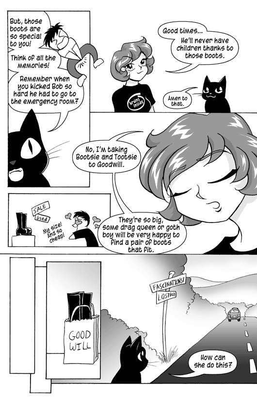 I once drew a map of Nowhere, Virginia, the mountain town where Rachel the Great lived. All of the roads and locations had names that related to music. Rachel lived on Fascination Street, right off the Lost Highway, which is the name of a movie whose soundtrack was produced by Trent Reznor of Nine Inch Nails. Sometimes these details sneaked back into the comic without warning.