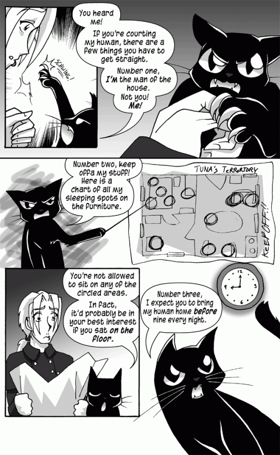TUNA: "If you're courting my human, there are a few things you have to get straight."