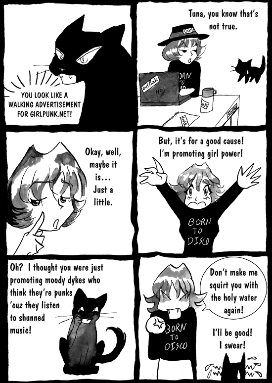 TUNA: "Oh? I thought you were just promoting moody dykes who think they're punks 'cuz they listen to shunned music!"