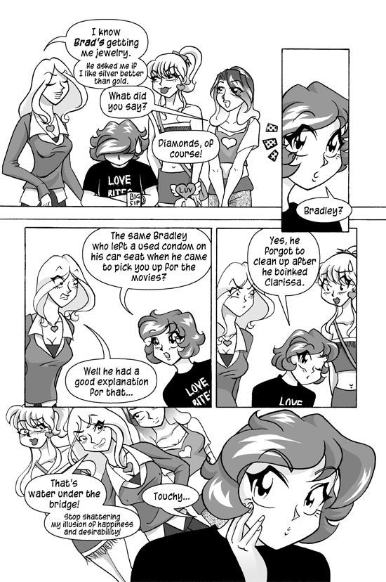 RACHEL: "The same Bradley who left a used condom on his car seat when he came to pick you up for the movies?"