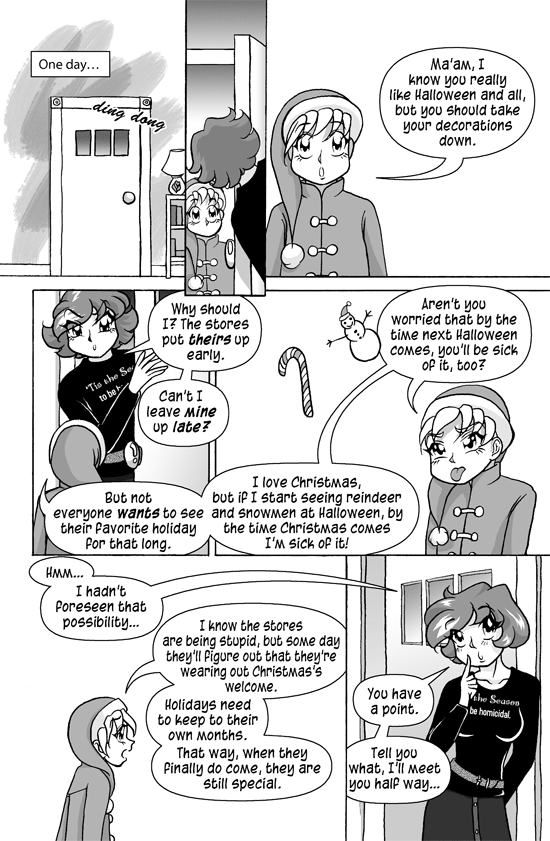 WOMAN: "I know the stores are being stupid, but some day they'll figure out that they're wearing out Christmas's welcome."