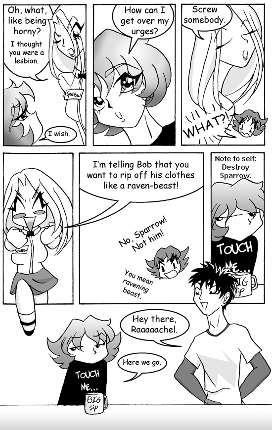 Sparrow’s so cute when she’s being evil! Also, I’m so sorry I mangled Bob so badly in that final panel. Urf. Still learning to draw guys.
