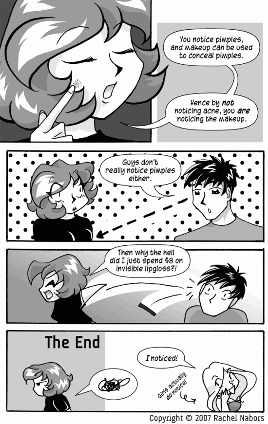 RACHEL: "You notice pimples, and makeup can be used to conceal pimples."