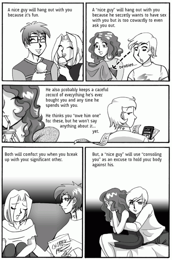 I don’t think I agree with the second panel, this just seems like the “guy who’s into you” The tab-keeping boyfriend sounds awful
