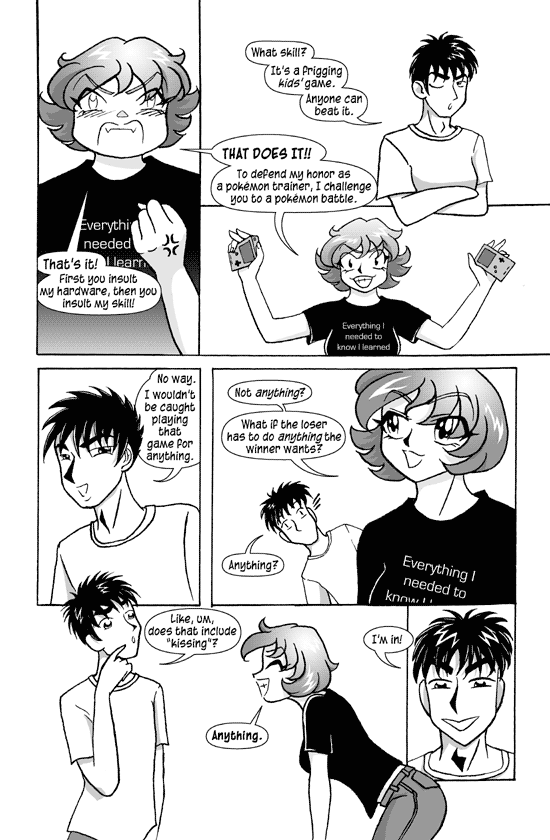 RACHEL: "THAT DOES IT!! To defend my honor as a pokemon trainer, I challenge you to a pokemon battle."