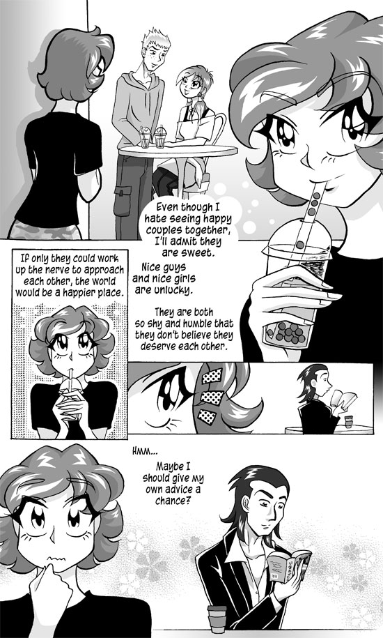 The Anti-Cupid notices an attractive guy reading a book nearby.
