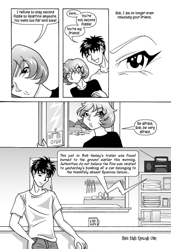 Oh gee…how evil. How come is it you never make Bob and Sparrow dimensional like you do Rachel? :/