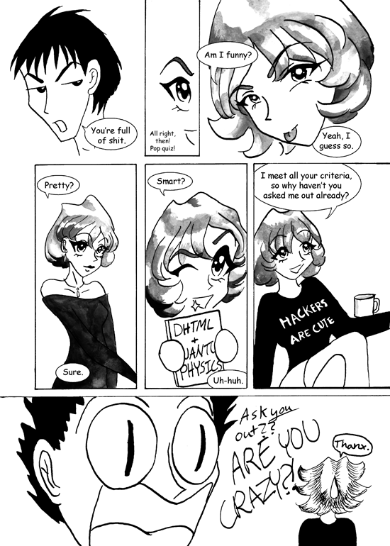 Looking back on these comics, I wonder what would have happened if Rachel had just asked the cute guys out instead of waiting passively? I think she’d have given Sparrow a run for her money