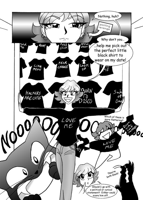 RACHEL: "Why don't you... help me pick out the perfect little black shirt to wear on my date!"