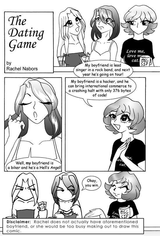 I believe I was referring to the first worm that ripped through cyberspace and really put “security” on the mass public’s radar. That would be the Slammer Worm. And yes, it would totally be hot to have a boyfriend who could write code like that. Well, unless he was a creep. But, I always liked to imagine the people who wrote these things as misunderstood, lethargic seekers of knowledge who needed a big hug and cuddle.