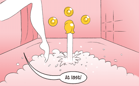 Feb 28, 2007 The Housesitter, Part 2, Page 5 ▶ Transcript PANEL 1 Rachel's leg enters a bubbly bath with rubber ducks floating on the surface. RACHEL: "At last!" ← The Housesitter, Part 2, Page 4 The Housesitter, Part 2, Page 6 → It occurs to me that posting these one frame a day will take months. I’m sorry.