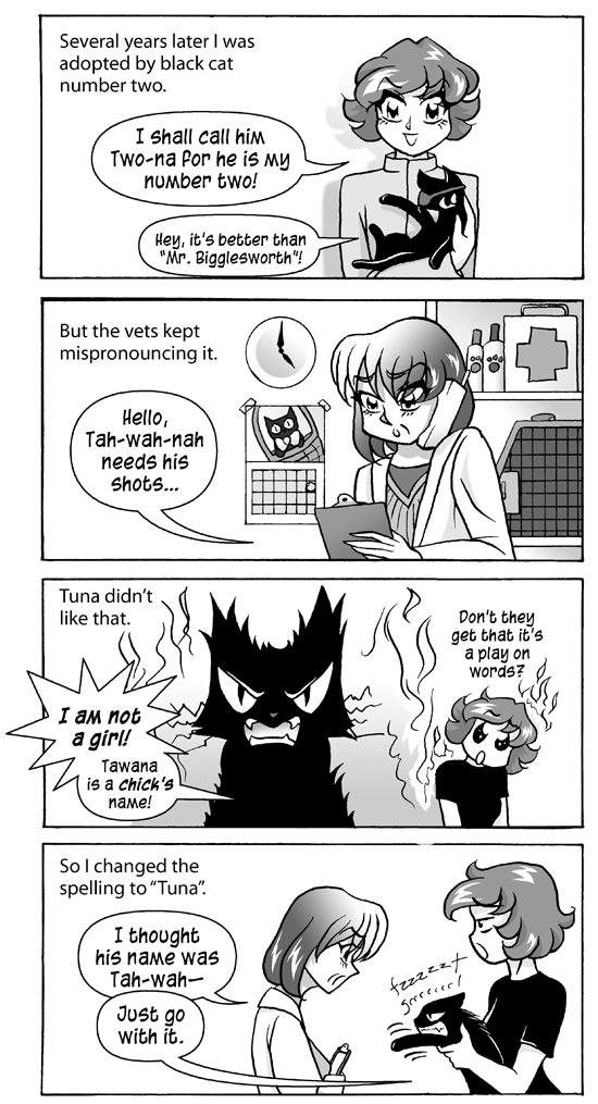 NARRATION: "So I changed the spelling to 'Tuna'."