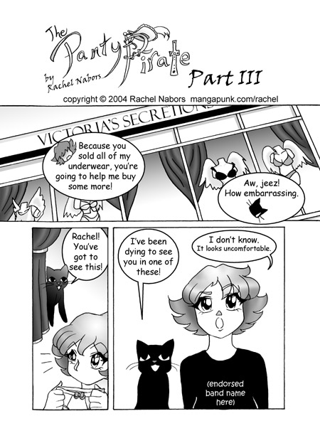 Title card reads "The Panty Pirate by Rachel Nabors - Part III" with copyright 2004 Rachel Nabors mangapunk.com/rachel