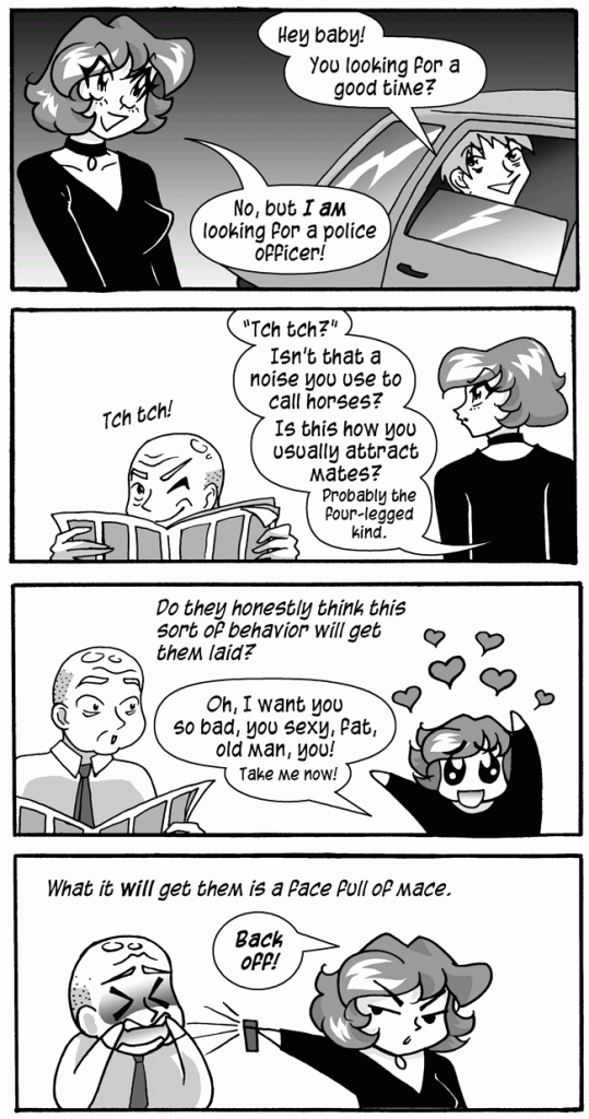 MAN IN CAR: "Hey baby! You looking for a good time?"