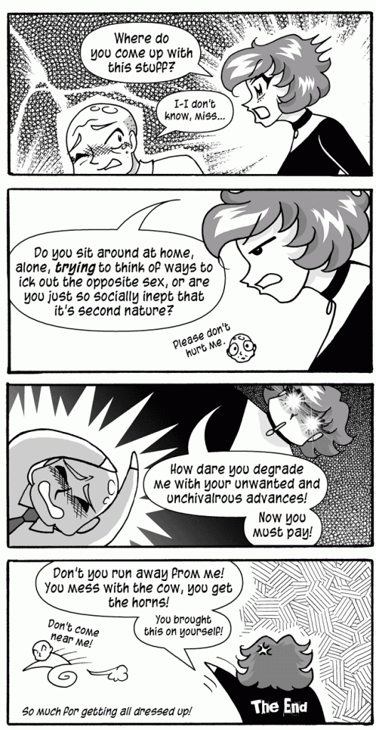 RACHEL: "How dare you degrade me with your unwanted and unchivalrous advances!"