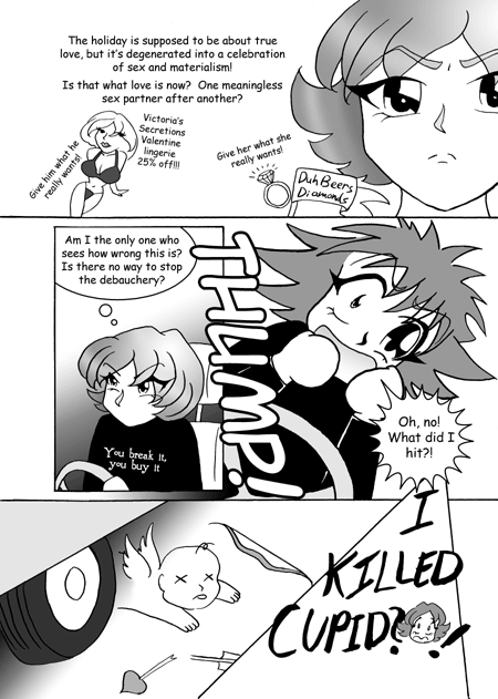 RACHEL: "The holiday is supposed to be about true love, but it's degenerated into a celebration of sex and materialism! Is that what love is now? One meaningless sex partner after another?"