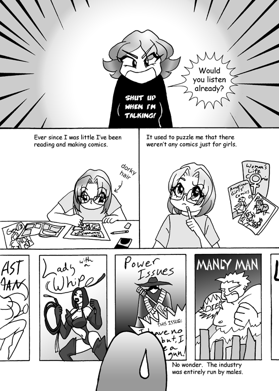 Caption: "It used to puzzle me that there weren't any comics just for girls."