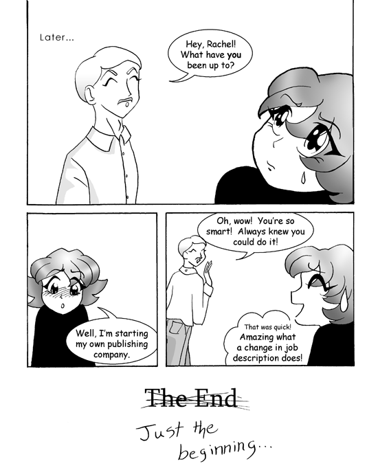 RACHEL (thinking): "That was quick! Amazing what a change in job description does!"