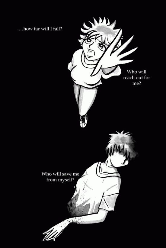 This is not a comic where to main character suddenly finds happiness, and that is what shocked me. She is left alone, not miraculously saved by love or finds a true friend…she is all alone. There’s a part of her in all of us. She is the part we don’t want to acknowlegde, but we feel her pain in us. When we have secrets and burdens we feel nobody can lift, she is there. And we retreat into ourselves and hide. This is so real. It’s all of us at one point or another.