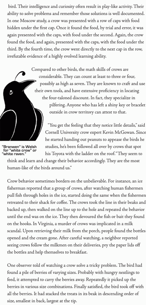 [Illustration of a crow with note: "Branwen" is Welsh for "white crow" or "white raven."]