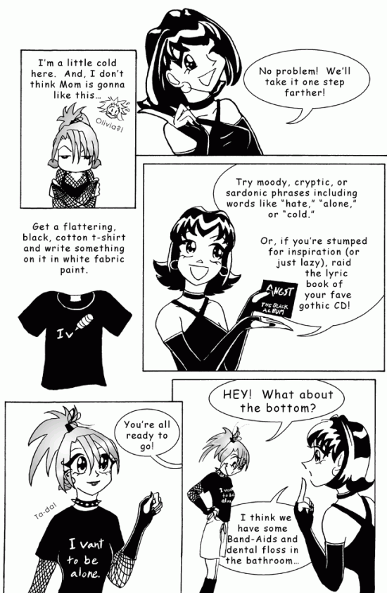 NARRATOR: "Or, if you're stumped for inspiration (or just lazy), raid the lyric book of your fave gothic CD!"