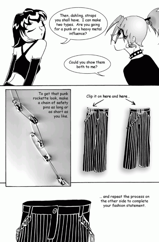 MEG: "Then, dahling, straps you shall have. I can make two types. Are you going for a punk or a heavy metal influence?"