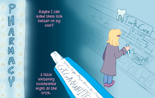 BLONDE WOMAN: "A little whitening toothpaste might do the trick."