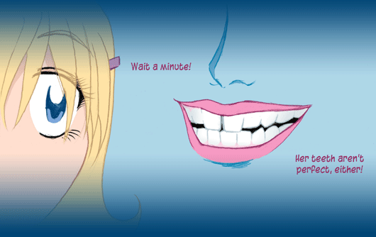 GIRL: "Her teeth arent perfect, either!"