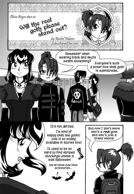 I loved drawing Olivia comics because I could go to all my favorite gothy clothiers online and draw on their fashions for inspiration. I think everyone in Olivia’s world was becoming a goth, which made me very happy